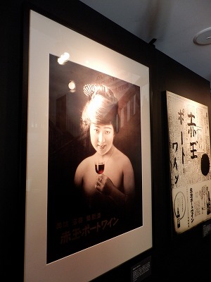 1909年(明治42年)に「赤玉ポートワイン」の最初の新聞広告を出したそうです。それが、上の画像の右側。