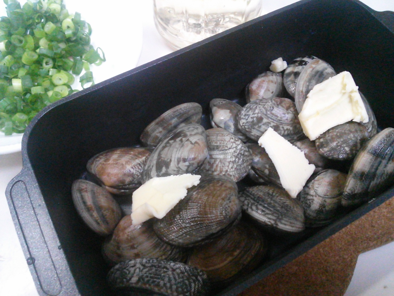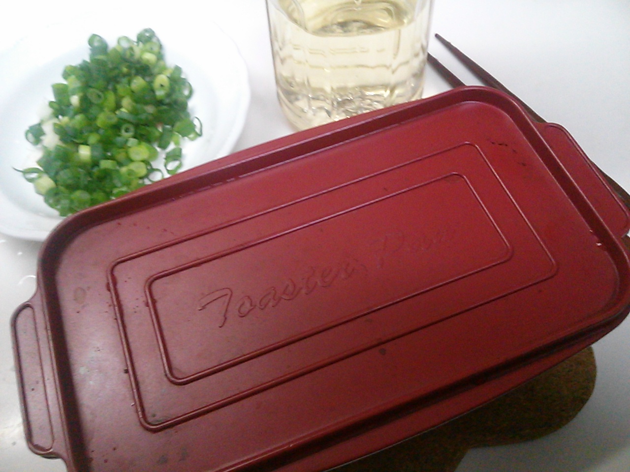 トースターパンのまま、ねぎを載せて、テーブルに出してもいいし、