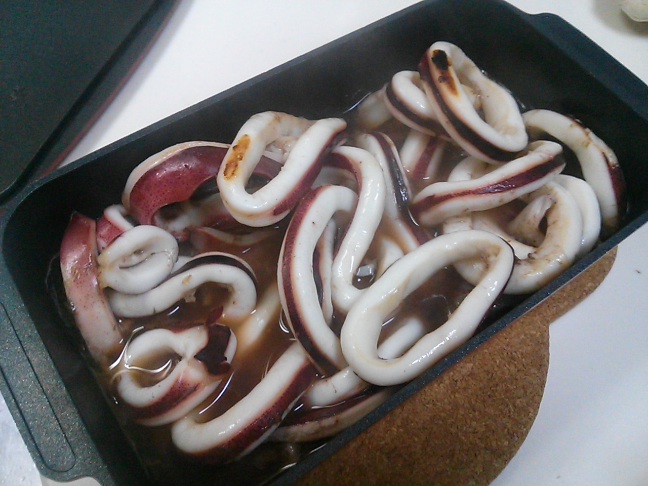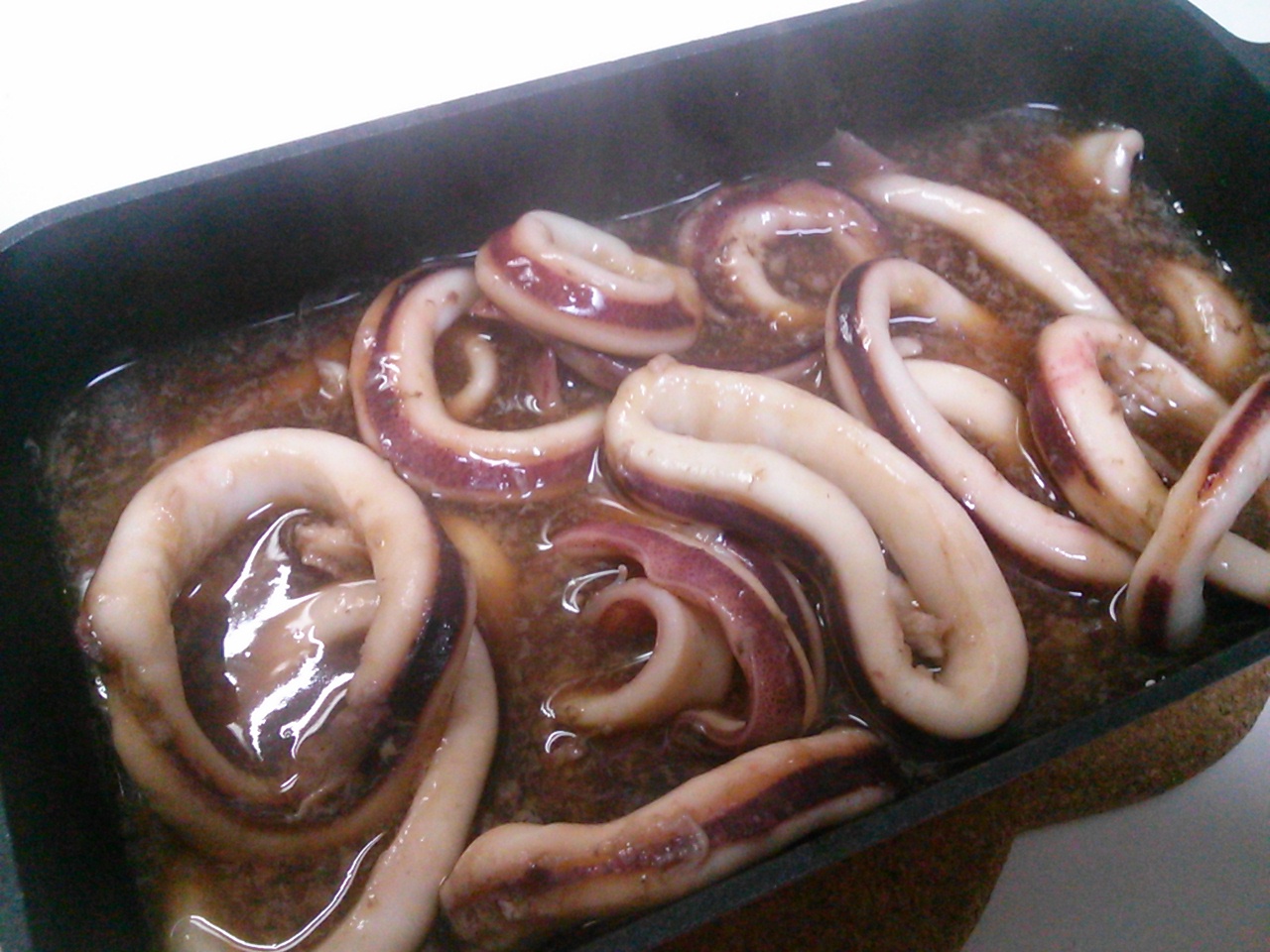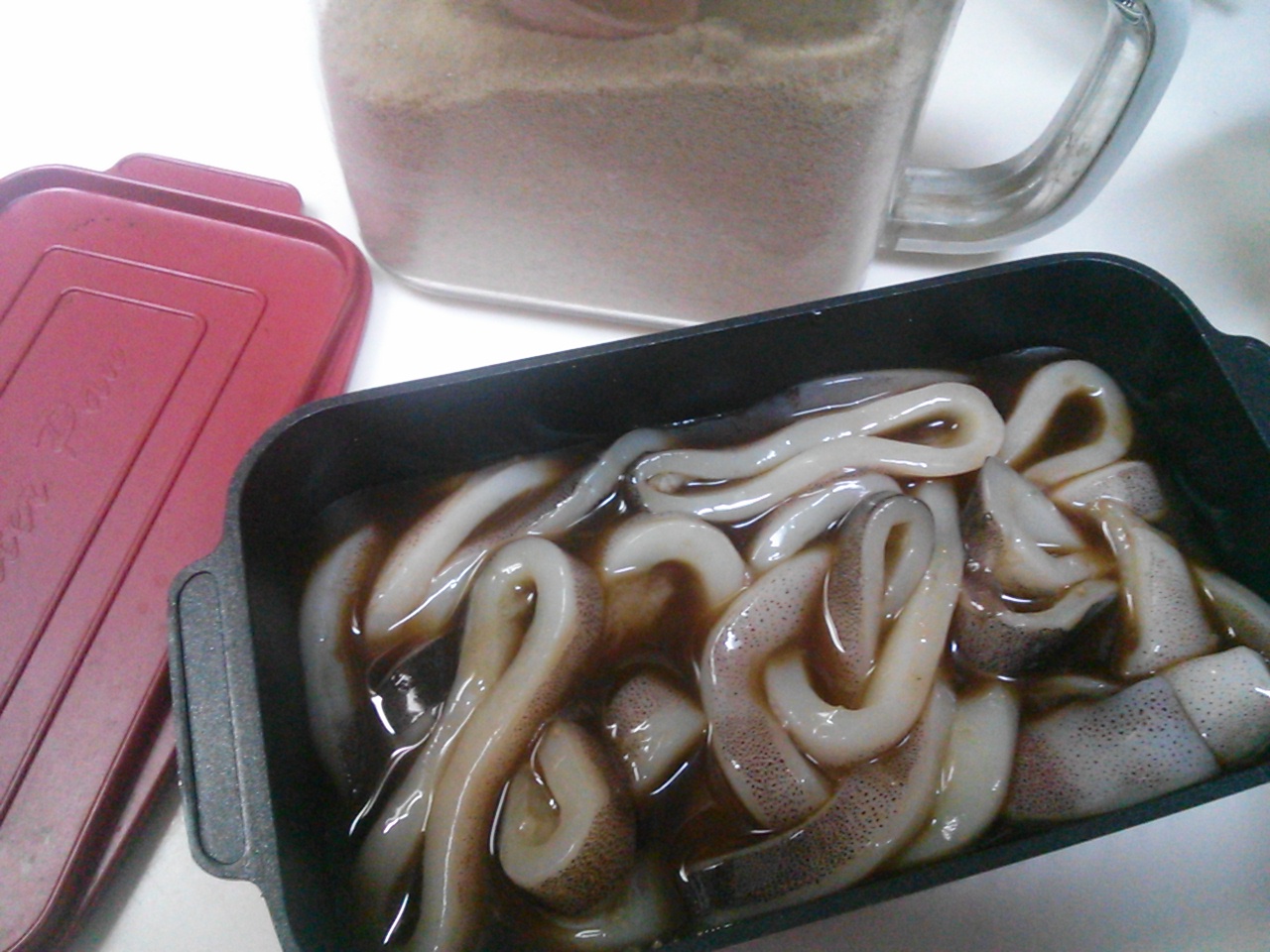 そこに、魚の煮汁を100cc くらい入れて、砂糖大さじ1を加え、混ぜます。