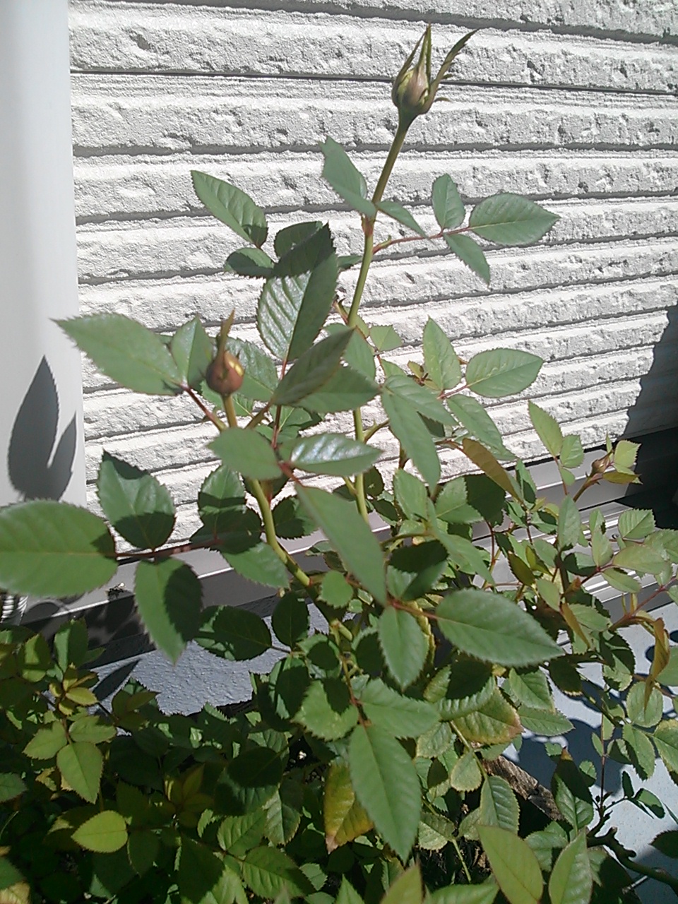 ミニ薔薇も、光をいっぱい受けて蕾を膨らませてる。