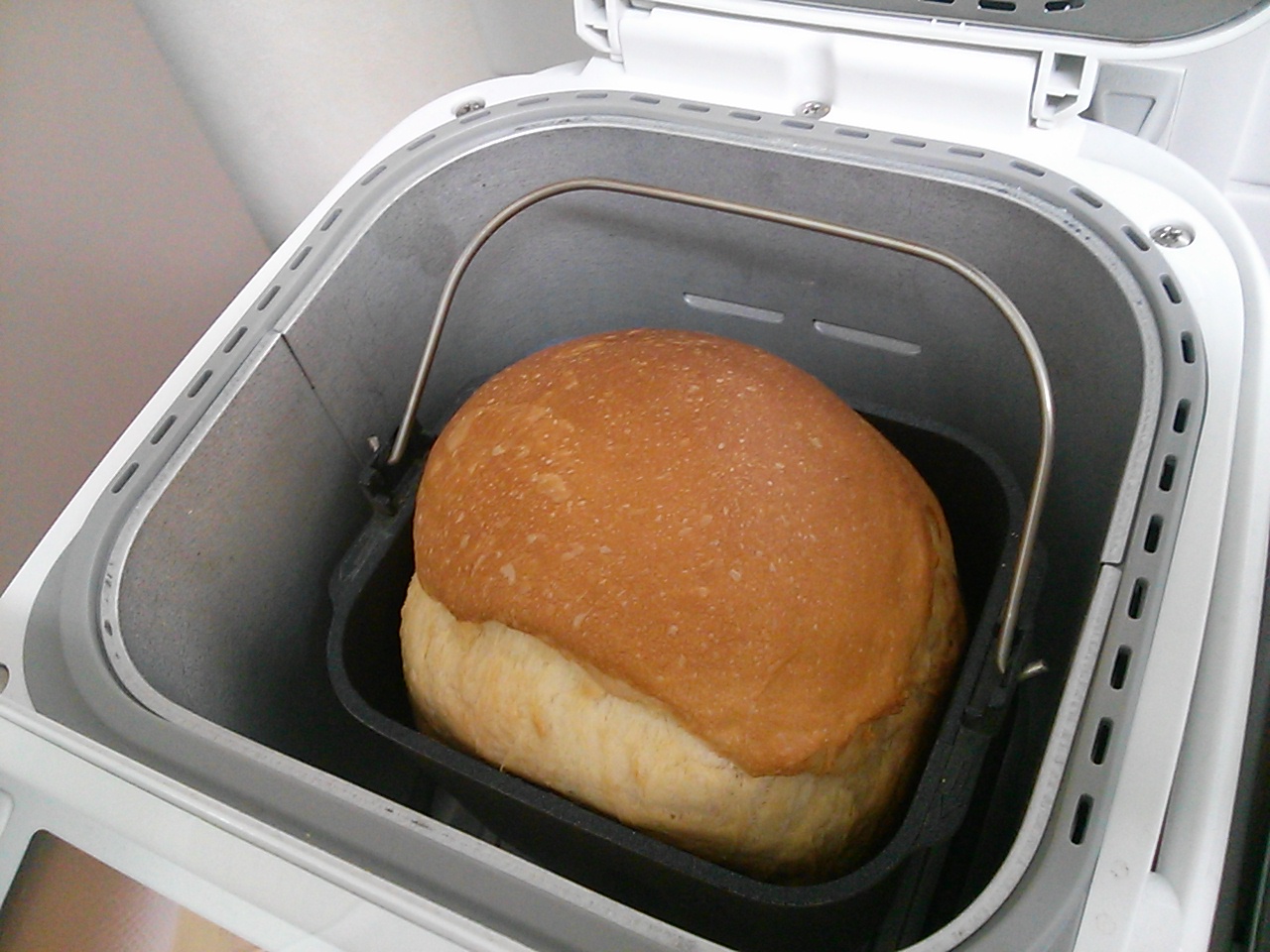 ホームベーカリーに材料をセットし、食パンコースで、焼き色は、薄いコースで焼きます。