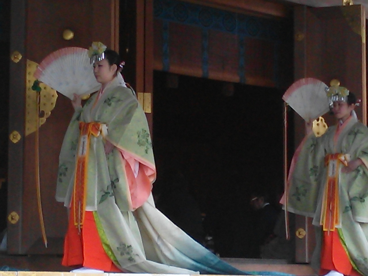 檜扇(ひおうぎ)と御鈴(おすず)の御神楽です。