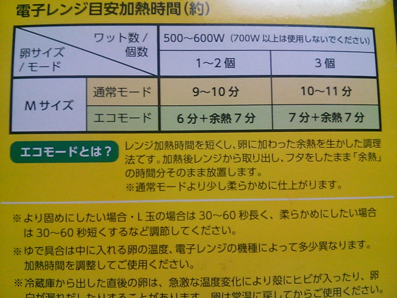 エコモードとは、チンしたあと、ふたをしたまま余熱放置するやり方です。