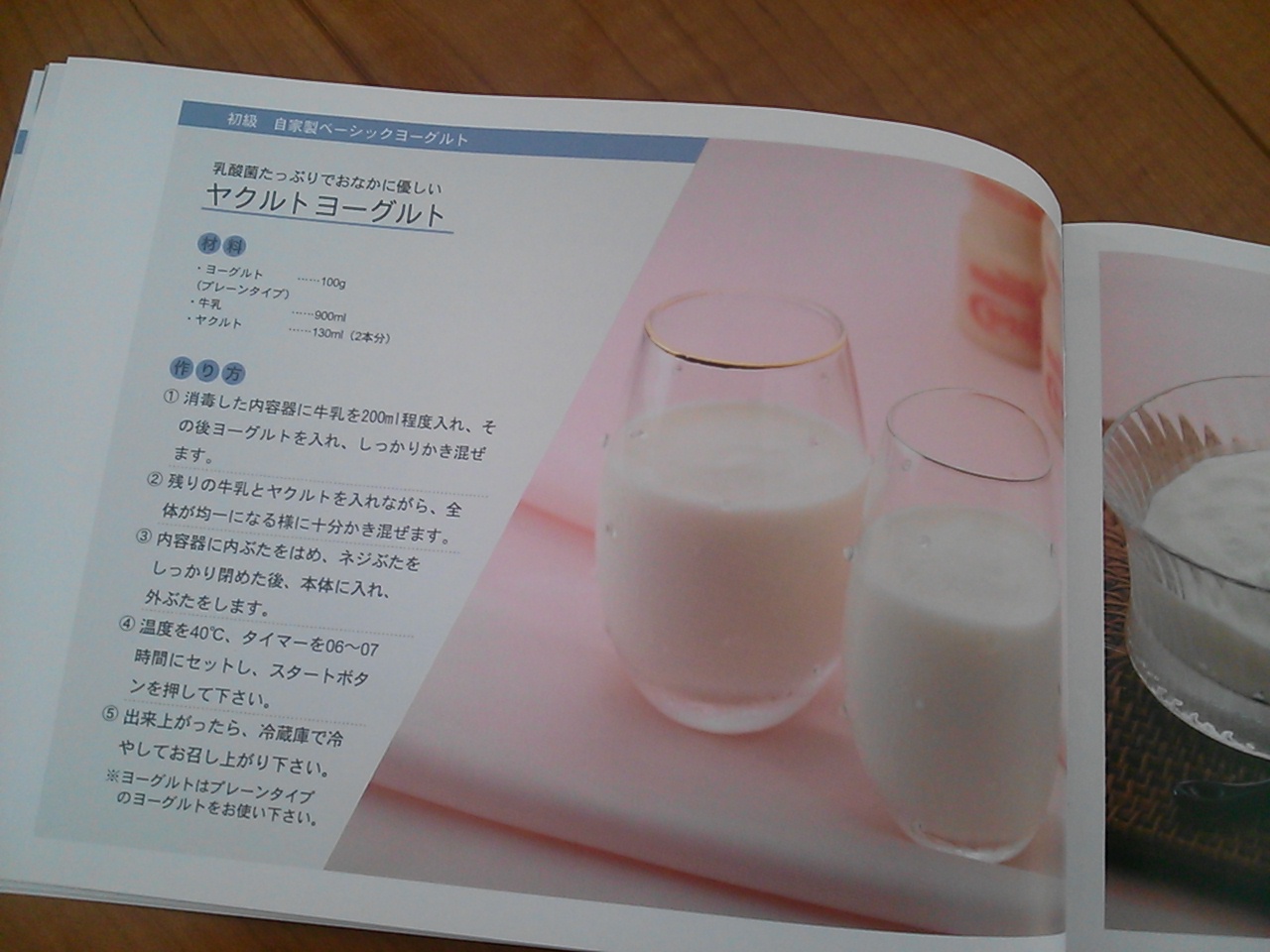 レシピ本も付いてて、カルピスヨーグルトや、ヤクルトヨーグルト、豆乳ヨーグルトなんかも作れます。