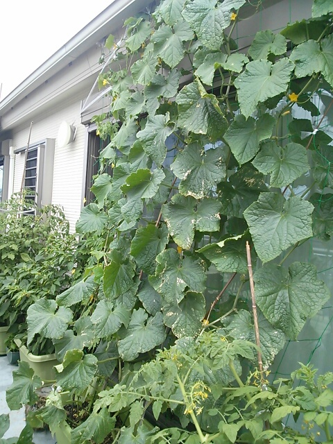 ゴーヤと一緒に植えたきゅうりは、成長が早く、