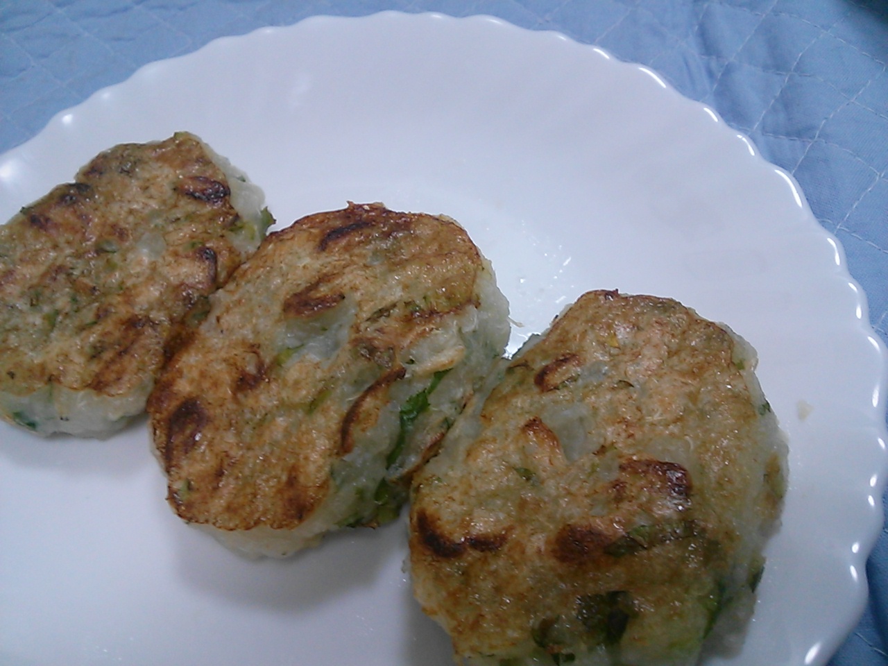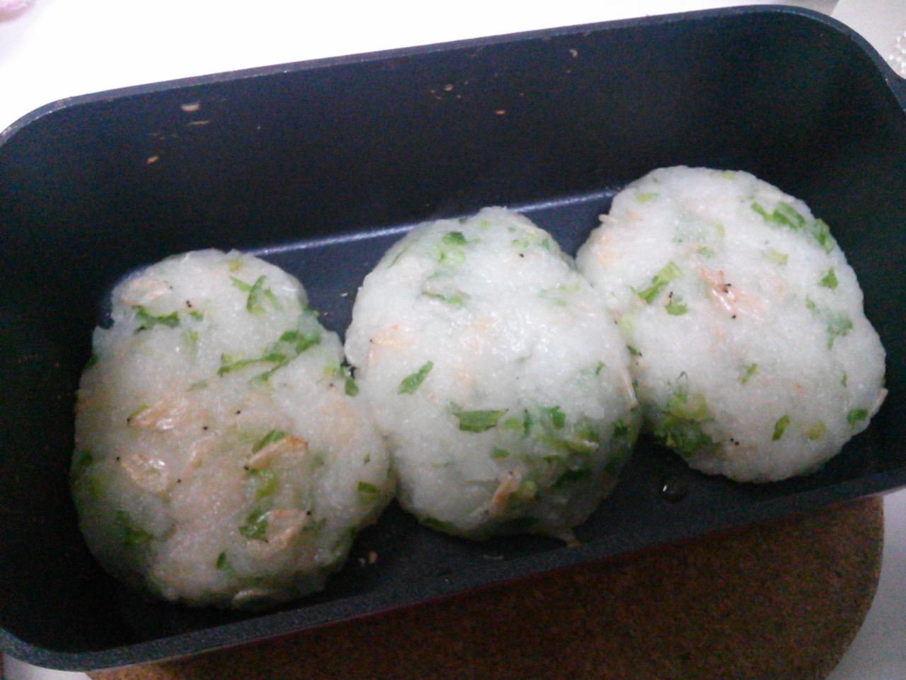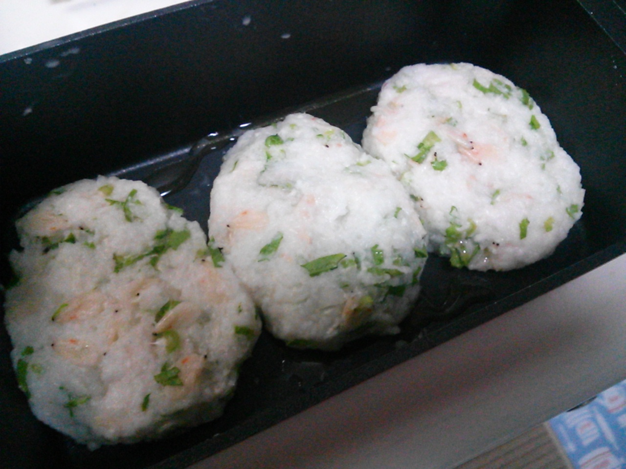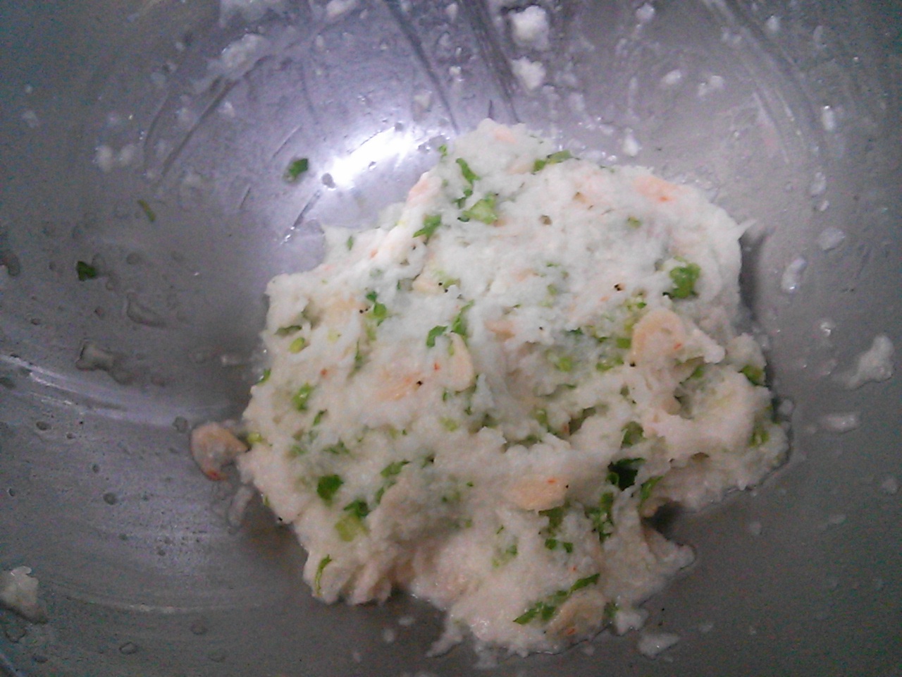 片栗粉・小麦粉 各大さじ1~2と塩一つまみを入れて、混ぜます。