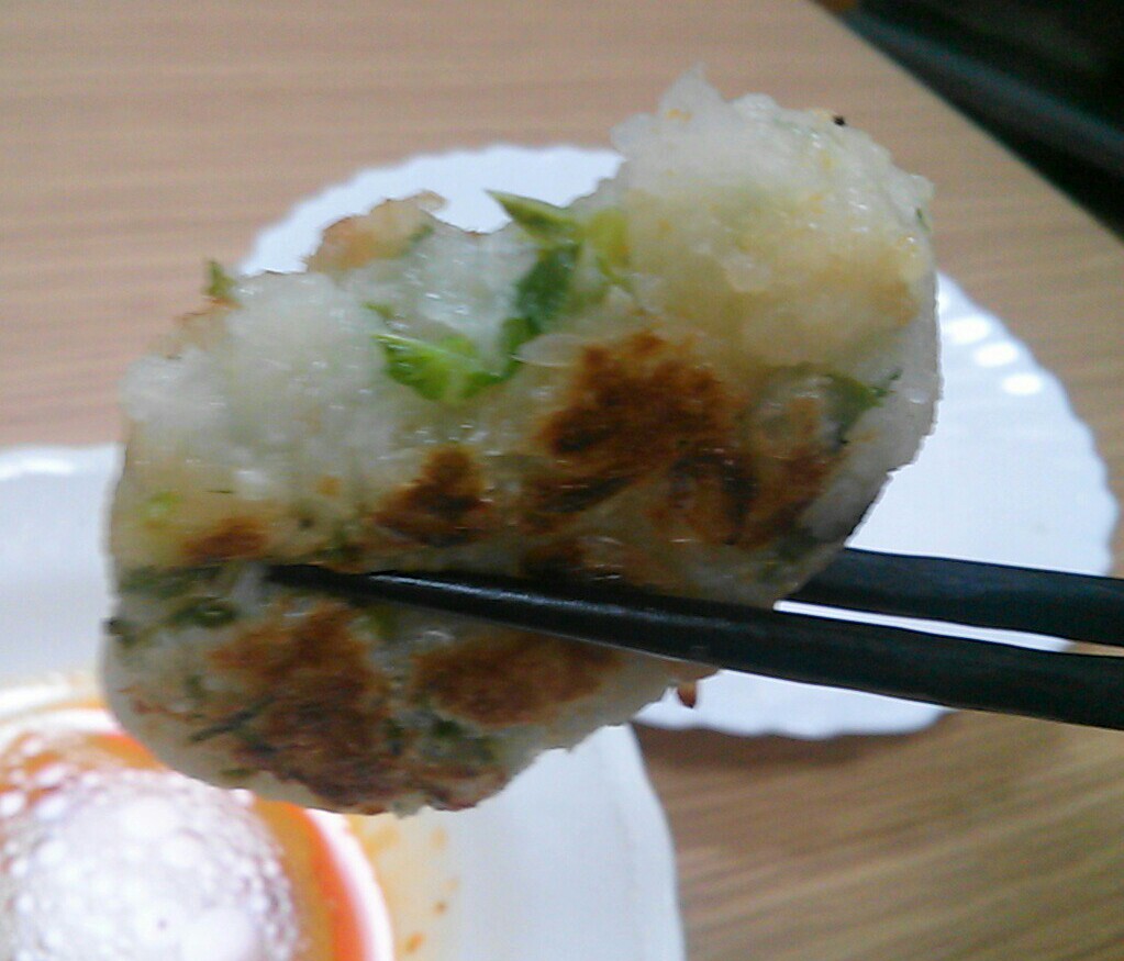 ポン酢にラー油を入れたタレに浸けて食べました~