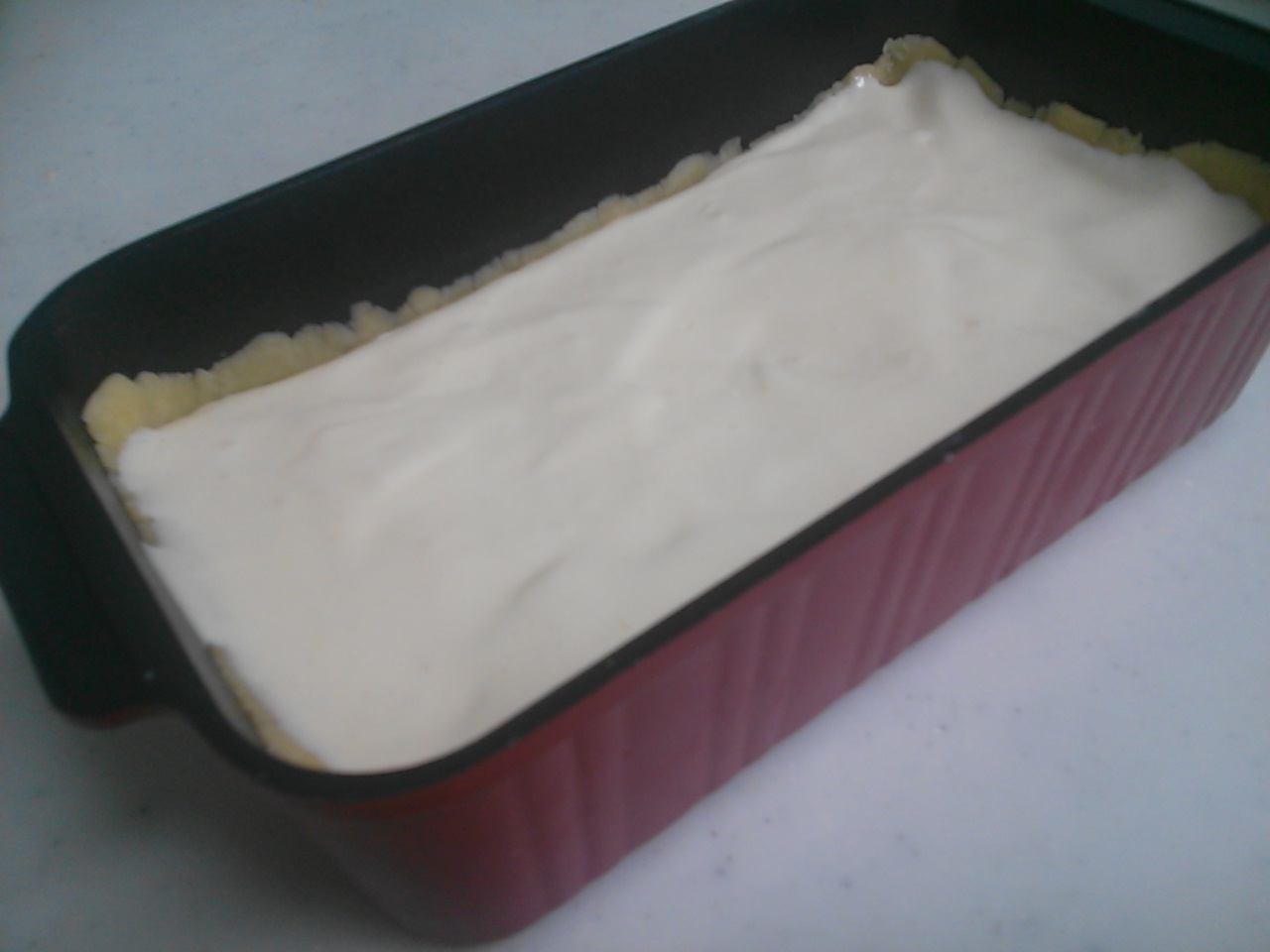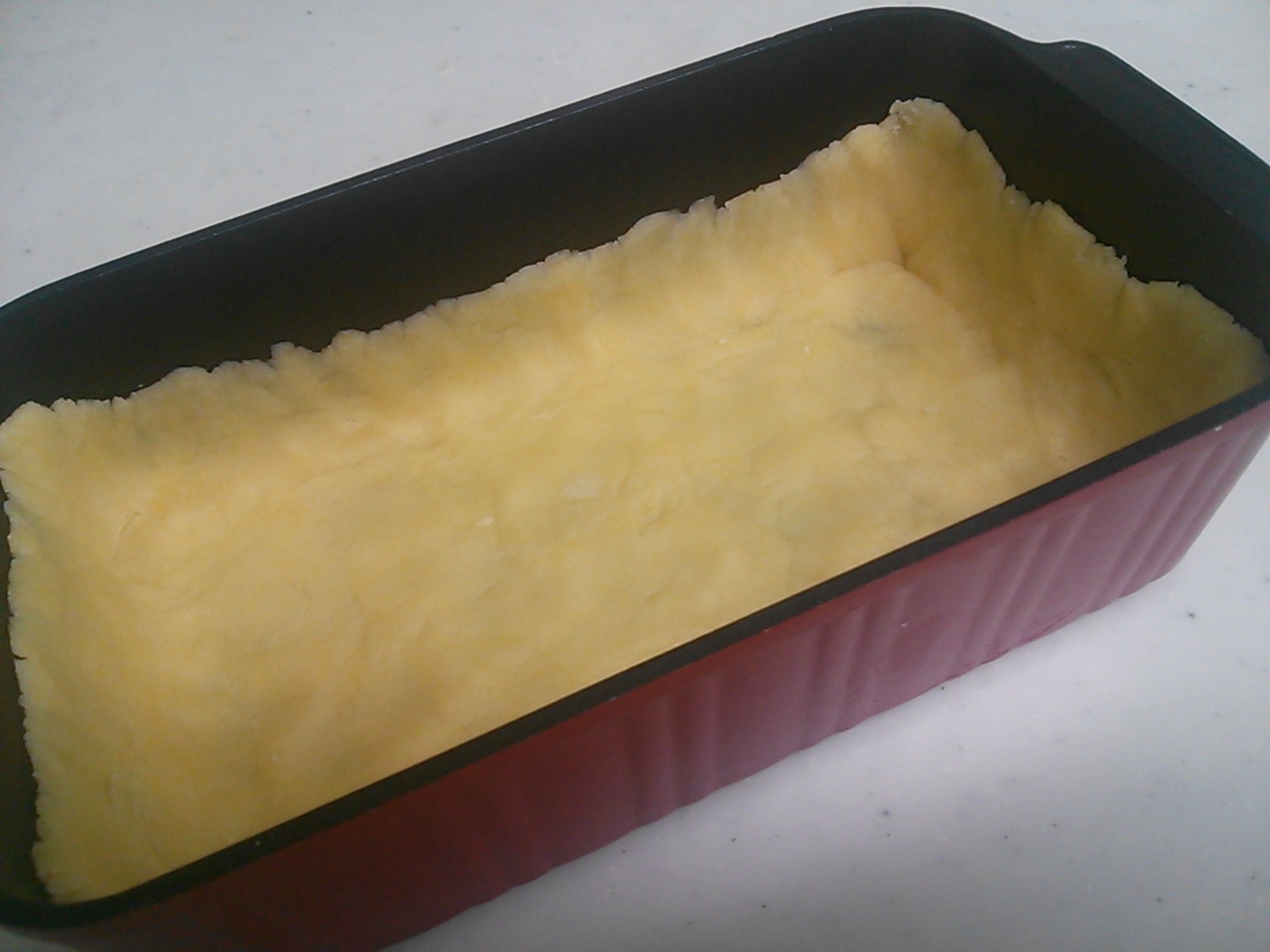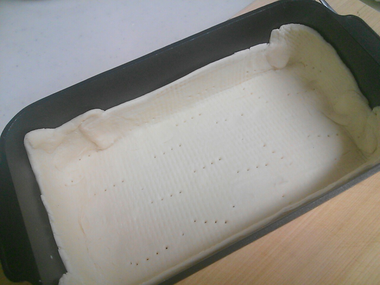 まず、台の部分をトースターパンの底と側面に。(2回分だから半量)
