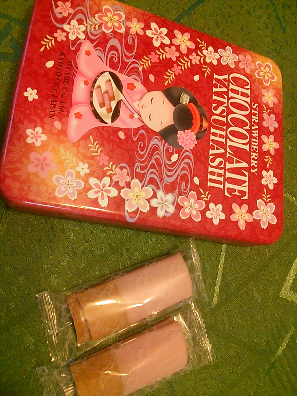 こちらの緑の缶は、抹茶チョコ八ツ橋。