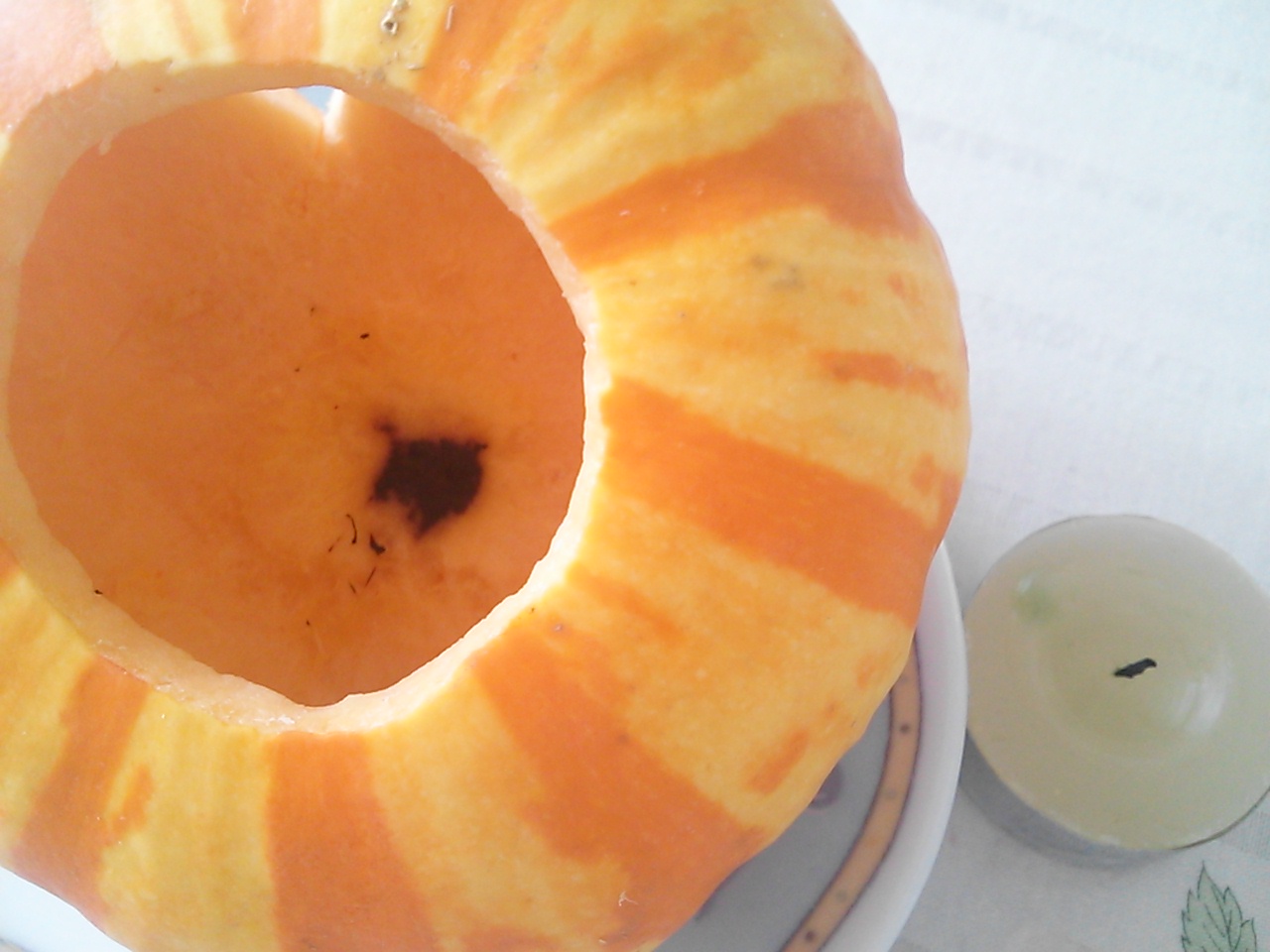 おもちゃかぼちゃは、小さいから蝋燭の火が当たってしまうみたいです。