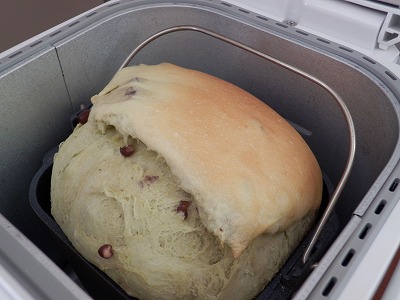 粗混ぜ機能が無いHBの場合、ミックスコールから、3分後に入れると甘納豆が粉々になりにくいそうですよ。